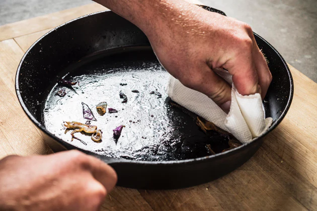 3. Rinse and Dry: Rinse thoroughly to remove all soap residue. Crucially, dry your skillet immediately and completely with a clean towel to prevent any potential rust on exposed cast iron areas, such as rims.